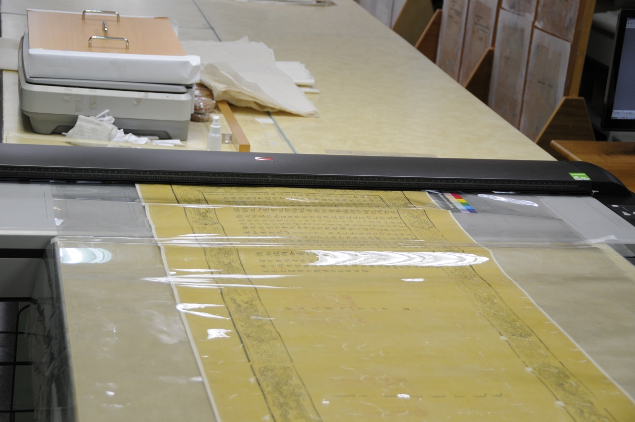 考量檔案的數位化目的,擬訂數位影像的規格;再依原件的實體整理狀況決定製作數位影像的方法,分為掃描法與數位攝影法。掃描圖檔的規格為典藏級300dpi,以下再由系統直接降階轉存為150dpi或72dpi,做為公共資訊級。一般摺件多用掃描方式進行數位化,大尺寸的檔案或卷軸則採用數位攝影。